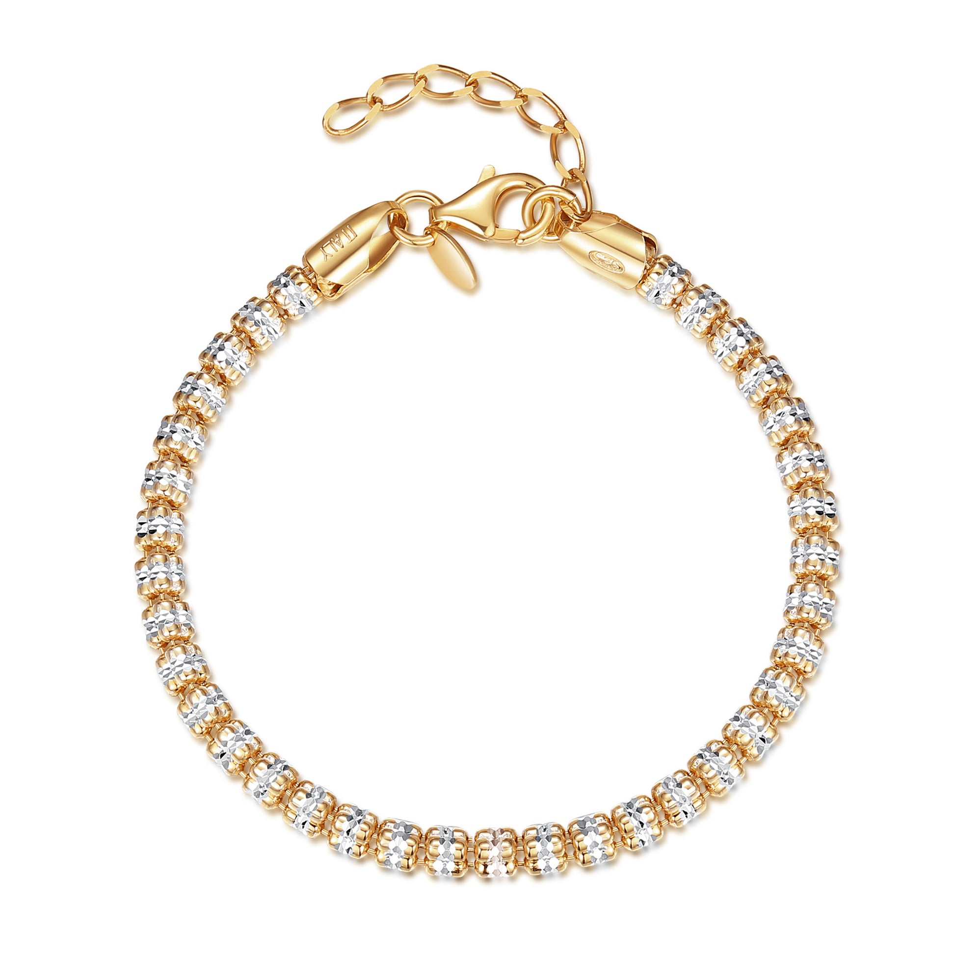 Crafted in 18K gold plated sterling silver, this bracelet is available in three finishes—yellow gold, cool silver and romantic rose gold—so you can choose the perfect metal to match your everyday jewelry stack.