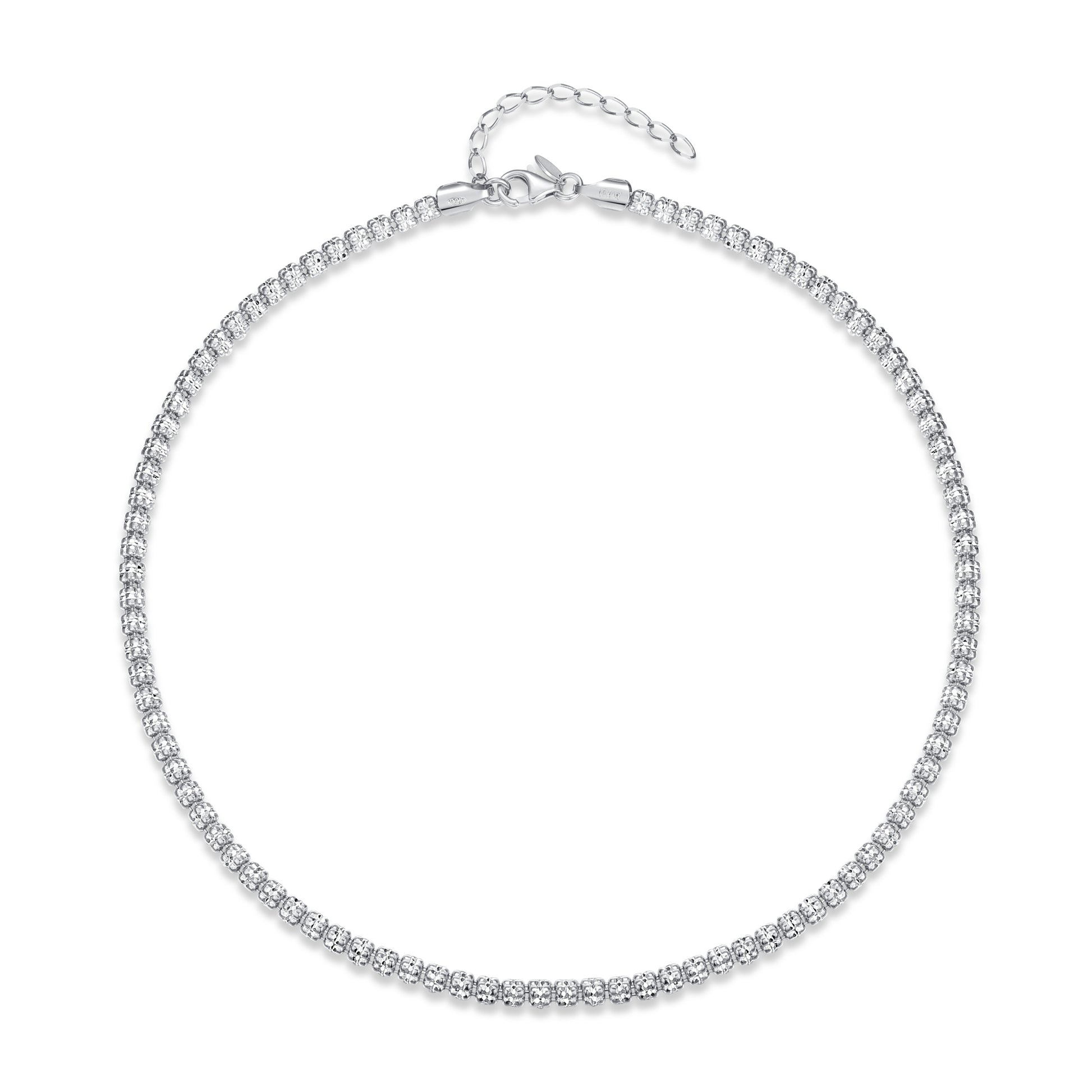 Crafted in sterling silver with luxe 18K gold plating, this tennis necklace is available in classic silver, warm yellow gold and romantic rose gold tones, making it easy to match your everyday jewelry stack.