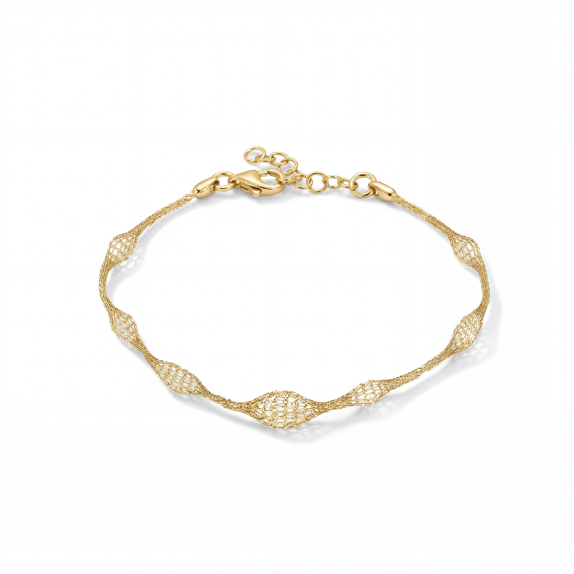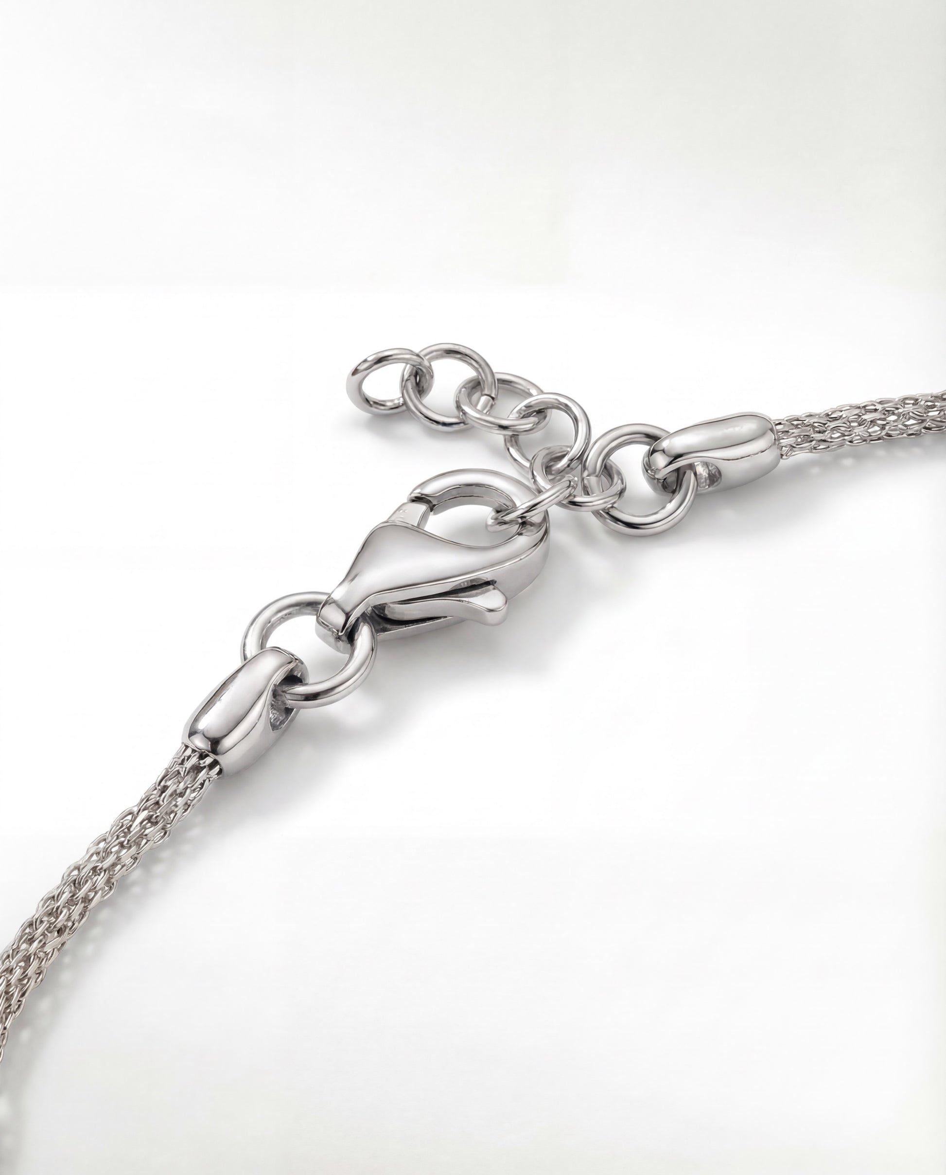 Bathed in a luminous silver glow, these Mesh Crystal Bracelets feature delicate woven chains encrusted with pavé crystal beads in fluid, oval forms. Inspired by natural contours, the textured stations catch light dynamically, sparkling with subtle motion.