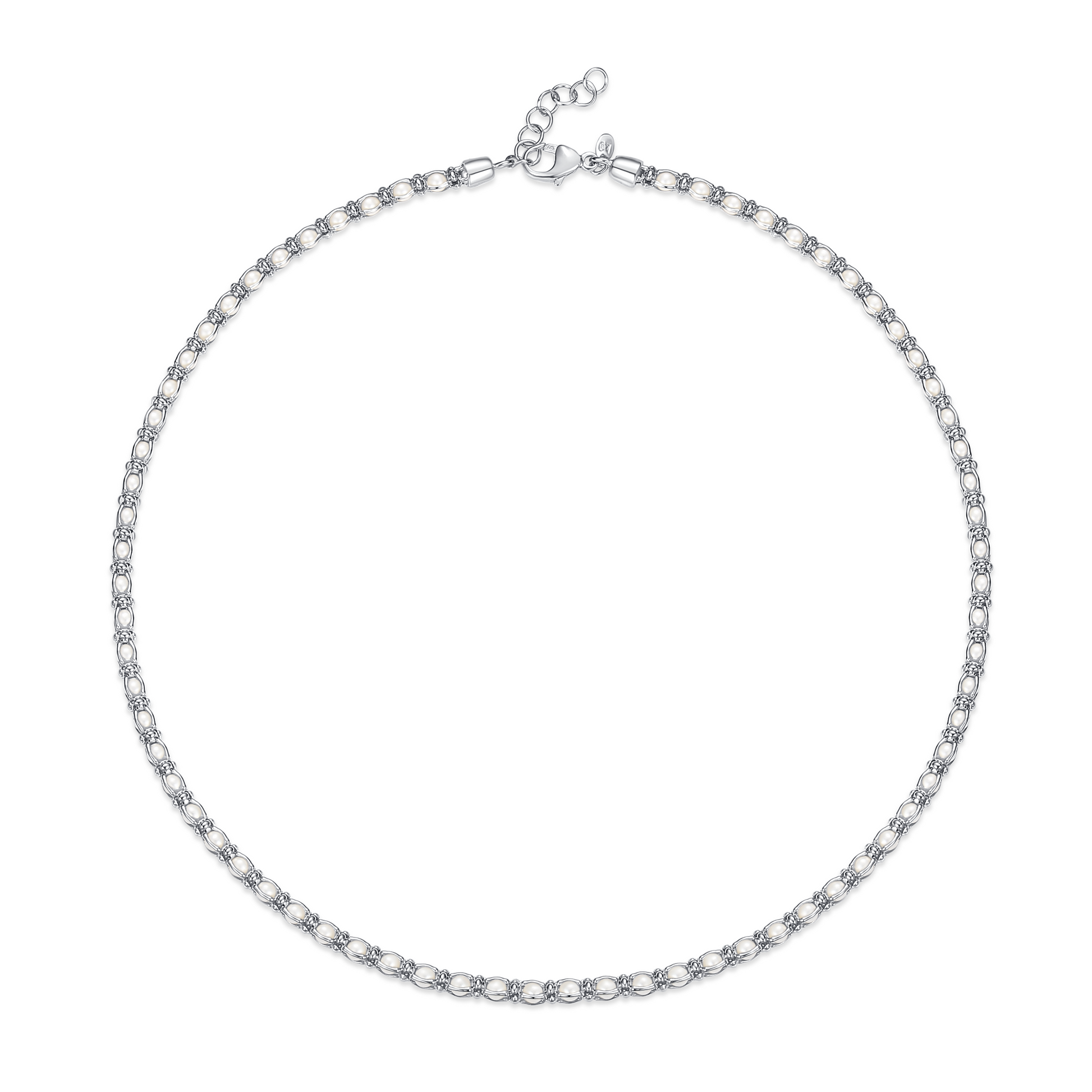 An emblem of timeless elegance, this necklace showcases a single strand of luminous white Swarovski Crystal Pearls. Each pearl is perfectly formed, radiating a signature luster that captures the light with every movement. This essential piece offers pure, understated sophistication, designed to rest gracefully along the collarbone.